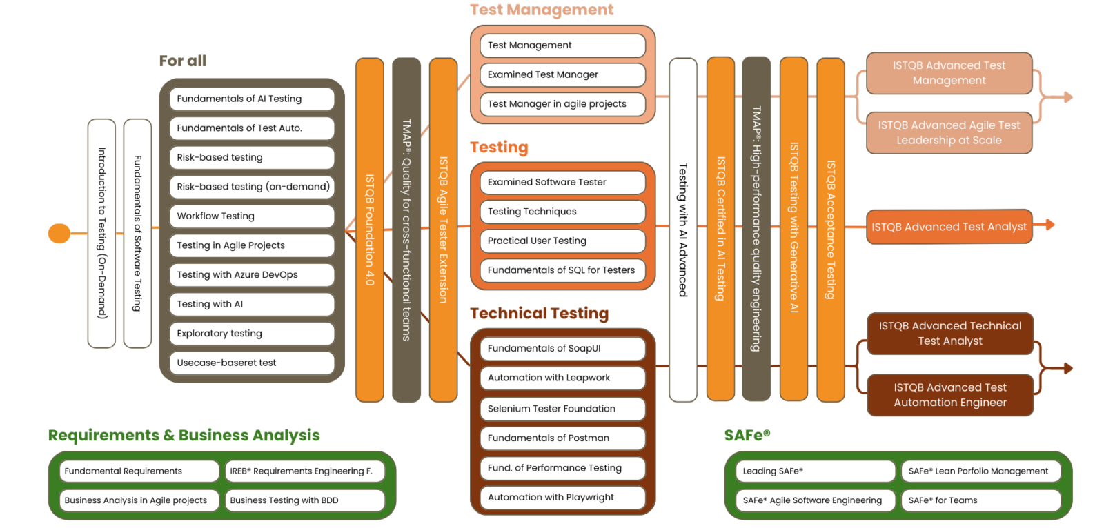 Whether you are new to testing and quality assurance or have several years of experience, our career paths provide an overview of which courses you should take and in what sequence.