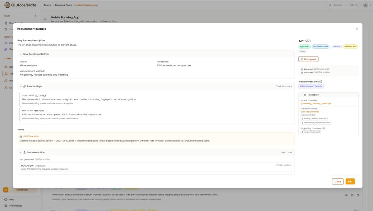QI Accelerate er en avanceret AI-platform, udviklet af TestHuset, der revolutionerer kvalitetssikring gennem automatiseret kravudtræk og testcasegenerering.